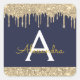 Navy Blue Gold Sparkle Glitter Monogram Square Sticker