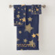 Navy Blue Gold Star Pattern Elegant Christmas Bath Towel Set
