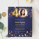 A modern, stylish photo invitation for a 40th birthday party. A navy blue background, decorated with stars. The blue colour is uneven. Personalise and add your photo and party details.