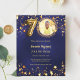 A modern, stylish photo invitation for a 70th birthday party. A navy blue background, decorated with golden stars. The blue colour is uneven. Personalise and add your photo and party details.