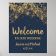 Navy Blue Gold String Lights Bokeh Wedding Welcome Poster