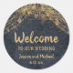Navy Blue Gold String Lights Wedding Welcome Classic Round Sticker
