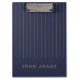 Navy Blue Gold Stripe Personalized Classic Modern Clipboard