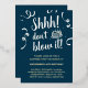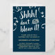 Looking for a fun and stylish way to invite your loved ones to your surprise birthday party? Look no further than our fun "Shhh! Don't Blow It!" invitation, featuring stylish gold foil script typography and a sleek navy blue background, with playful confetti and a birthday cake. Perfect for anyone who wants to keep things fun and chic, this invitation is sure to get your guests excited for the big day.