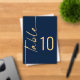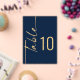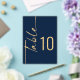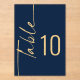 Navy Blue & Gold Wedding Acrylic Table Number. Table number is in a set rotated script along the left hand side. Personalise each number and guest names and add each to your cart individually.