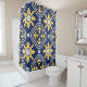 Navy blue gold white Moroccan arabesque tile Shower Curtain