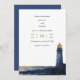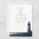 Navy Blue Golden Sunset Lighthouse Beach Wedding Invitation