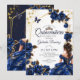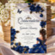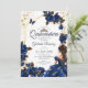 Navy Blue Golden Tiara Roses Quinceañera Invitation