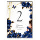 Navy Blue Golden Tiara Roses Quinceañera Table Number