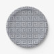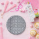 Custom designed paper plates with a navy blue Greek key pattern. Add text and images by clicking the "Customise It" button below the product image.