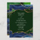 Blue and Green Agate Gold Faux glitter wedding budget invitations. Faux glitter agate variegated design. Middle invitation colours can easily be changed with the adjustable template. Budget friendly option. Elegant background texture of faux stone / marble look. Personalised wedding invitations.