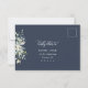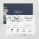 This wedding event response RSVP enclosure postcard with 4 meal choice options features an elegant modern minimalist style with watercolor greenery foliage leaves arrangements and beautiful calligraphy and clean and serif typography fonts on a navy blue background. The simplicity and clean design of this wedding RSVP response enclosure card works well with all wedding themes and definitely a great addition to your wedding. Just customise the couple's names, date, 4 meal choice options, and other info in a few easy steps and personalise it to give it a nice personal touch.