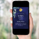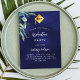 A navy blue background, decorated with greenery. The blue colour is uneven. Personalise and add a name and party details.