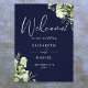 Navy Blue Greenery Floral Wedding Welcome Sign