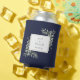 Featuring delicate watercolor greenery leaves and a gold frame on a navy blue background, this chic botanical design can be personalised with your names and special date. Designed by Thisisnotme©