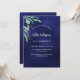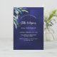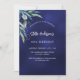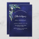 A navy blue background, decorated with greenery. The blue colour is uneven. Personalise and add your name and party details.
