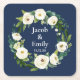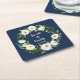 Navy Blue Greenery Personalised Names Date Wedding Square Paper Coaster