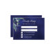 A navy blue background, the blue colour is uneven. Decorated with watercolored greenery. Personalise and add the reply by date.