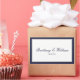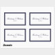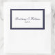 Classic navy blue bride and groom with date rectangular stickers. Navy blue and grey border with navy blue script and plain text.