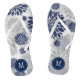 These pretty personalised flip flops feature a navy blue and light grey floral pattern on a white background. At each heel is a matching navy blue circle banner that is lined with white dots and a thin white line circle. At the centre of each banner is your monogram in white. Fun, trendy, and personalised just for you! *Graphic Design credit to Malachi Designs on Etsy.