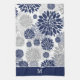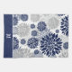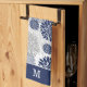 Navy Blue Grey Flower Pattern Monogram Tea Towel