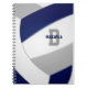 This volleyball themed spiral notebook features the image of an abstractly oversized navy blue, grey and white volleyball - personalise with the athlete's name and monogram - by katz_d_zynes