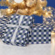 Navy Blue Grey White Chequerboard Chequered Wrapping Paper