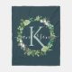NAVY BLUE GREY WREATH FOLIAGE WATERCOLOR MONOGRAM FLEECE BLANKET