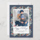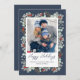 Navy Blue Happy Holidays Greenery Photo Holiday Card