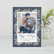Send warm happy holidays wishes with this stylish Christmas photo card featuring a rich navy blue backdrop and delicate winter greenery foliage. Designed with elegant calligraphy script and soft watercolor branches, this template adds timeless charm to your family greetings. A beautiful way to share memories, these holiday photo cards combine modern elegance with natural details, making them perfect for celebrating the season in style.