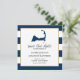 Save the Date Wedding Announcement for your Cape Cod wedding. Map of Cape Cod (South Eastern Massachusetts). Colours are in a Think Golden Sand Border and Dark Blue Stripes with a red heart over the HARWICH location. If the colour scheme is not what you wanted please let me know and I'll recreate that for you but please contact me before placing an order so a new design can be created for you to work with. Email paula@labellarue.com BEFORE placing an order for any design changes so a new design can be created for you. Happy Wedding Planning! Make sure to pick your favourite cardstock to have it printed on.