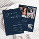 Make your big day special with this Navy Blue Heart Script 3 Photo Collage Wedding Invitation. Featuring a modern 3-photo collage, delicate calligraphy, and a minimalist design in trendy navy blue, this all-in-one invite includes a QR code for easy RSVP online. Perfect for couples seeking vibrant, fun, and unique wedding stationery with a simple handwritten style. Ideal for modern, effortless wedding planning!
