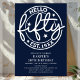 Navy Blue Hello Fifty 50th Birthday Invitation