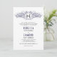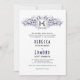 Navy blue heraldic crest with initials wedding invitation