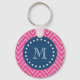 Navy Blue, Hot Pink Chevron | Your Monogram Key Ring