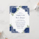 Navy Blue Hydrangea Floral Lace Wedding Invitation