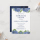 Navy Blue Hydrangea Wood Wedding Rehearsal Dinner is a beautiful watercolor with blue hydrangeas and greenery with a navy blue wood background. Perfect for a Spring / Summer wedding. You can personalise by selecting "Personalise this template" or if you want to customise this design even further, please select "Edit using Design tool". If you need matching items, please contact me.
