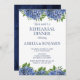 Navy Blue Hydrangea Wood Wedding Rehearsal Dinner Invitation