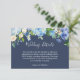 Navy Blue Hydrangeas Floral Wedding Info Details Card.