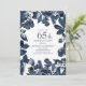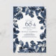 Navy blue/indigo leaves and floral on white 65th birthday party invitation. Contact us for help with customisation or matching products.