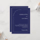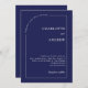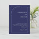 A classic navy blue background decorated with an ivory colored, slim broken frame and text. Personalize and add your names and the details.