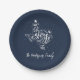 Navy Blue Joy Holiday Leaves Texas Shape Paper Plate