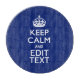 Your personalised Keep Calm saying on a classy navy blue decor. A personalised Keep Calm style saying on a one of a kind gift. Humourous or whimsical try on your creative words on two editable lines of text. Remember to use CAPITAL letters for best results.