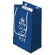 Navy blue and white Keep calm and your text gift bag for presents and favors. Make your own funny keep calm and carry on parody slogan. Vintage template design with keepcalmandcarryon typography and crown. Elegant keepcalm bags for Birthday, Bridal shower, wedding party, Christmas Holiday, Baby shower etc. Cute colorful examples: Keep calm and party on. Keep calm and love me. Keep calm and have fun. Small and large sizes plus bags for wine bottles. Custom background colors.