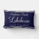 Navy Blue Lakehouse Family name Map Corinates Lum Lumbar Cushion