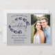 Navy Blue Laurel Leaves Rustic Grey Wedding Photo Save The Date