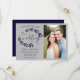 This beautiful wedding Save the Date card features a rustic navy blue and grey design with modern script lettering and a sprigs of hand painted watercolor leaves, vines, or foliage. There is space for your photo, the couple's name & wedding location. Elegant, stylish, and chic, this card is a great way to let your friends and family know to save the date for your special day.