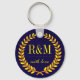 Navy Blue Laurel Wreath Monogram Wedding Keychain