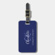 Navy blue leather white monogram name luggage tag