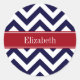 Navy Blue Lg Chevron Cranberry Name Monogram Classic Round Sticker